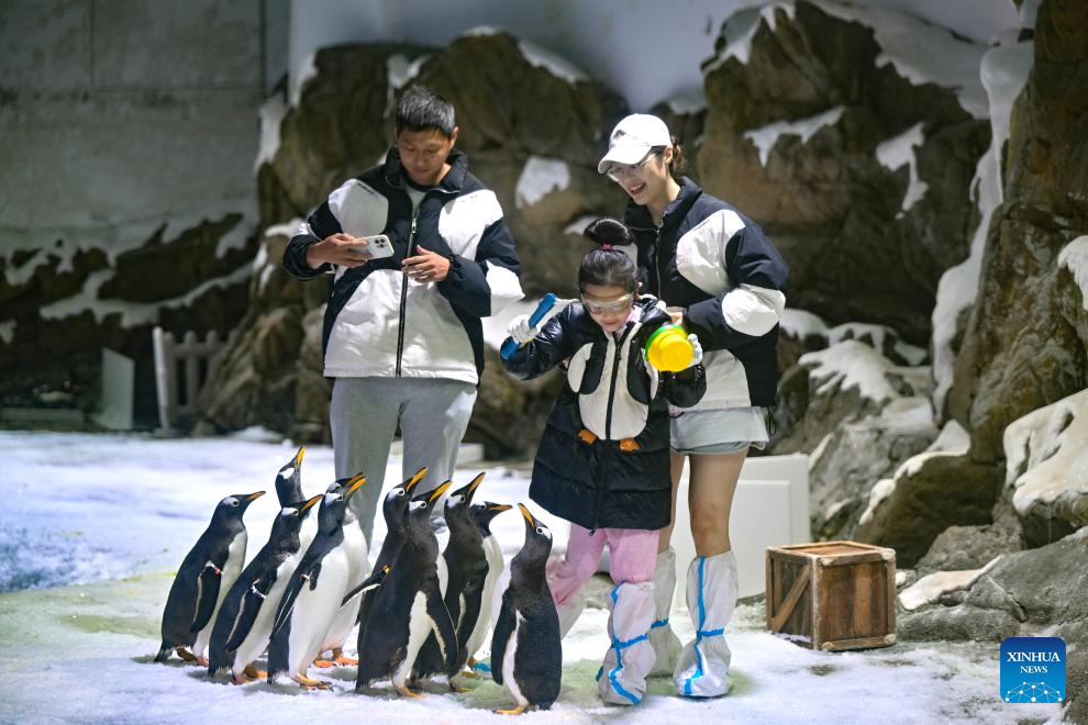 Tourists watch an underwater show at Hainan Ocean Paradise Resort in Lingshui Li Autonomous County in south China's Hainan Province, Oct. 18, 2025. Many tourists choose to travel off-peak to China's island province of Hainan, a popular tourist destination, as prices of transport and accommodation dip following China's National Day holiday. (Xinhua/Guo Cheng)