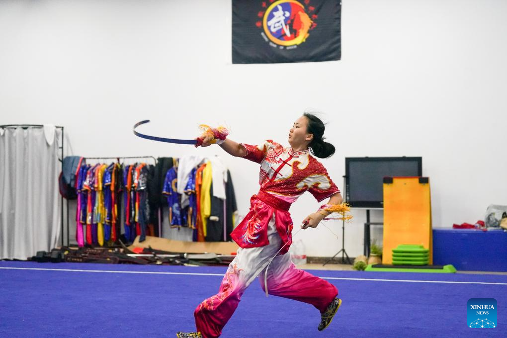 Leng Qiao Hui, an international student from Malaysia, practices martial arts at Anhui University of Chinese Medicine in Hefei, east China's Anhui Province, Oct. 16, 2025. More than 140 students from around the world are systematically learning traditional Chinese medicine (TCM) theory at the School of Humanities and International Education Exchange at Anhui University of Chinese Medicine. The school provides bilingual courses combining TCM theories and clinical practice for international students. Meanwhile, various cultural activities have been organized for them to enhance their understanding of TCM.