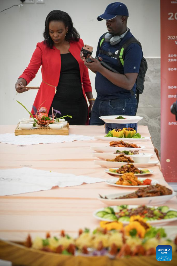 Visitors take photos of Chinese dishes prepared by contestants during the 2025 Africa Championship of Chinese Cuisine held in Nairobi, Kenya, Oct. 30, 2025. The 2025 Africa Championship of Chinese Cuisine, the first of its kind on the continent, was held Thursday in the Kenyan capital Nairobi, highlighting the deepening cultural exchanges between China and Kenya. (Xinhua/Li Yahui)
