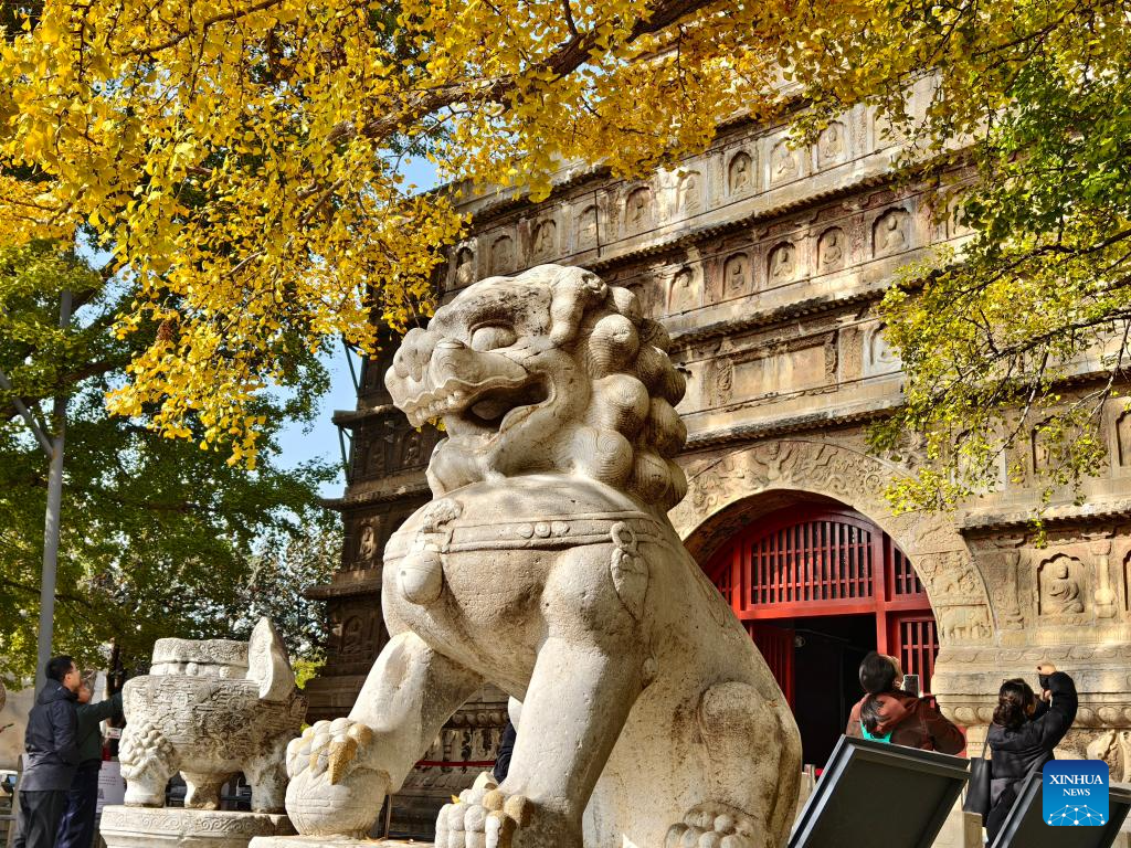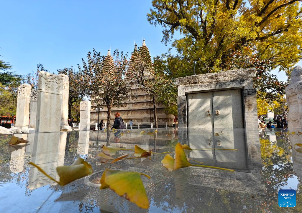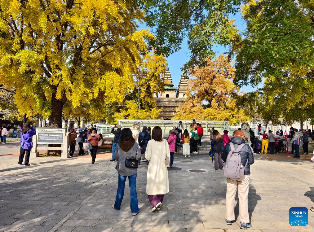 This photo taken by a mobile phone on Oct. 31, 2025 shows tourists visiting Wuta (five-pagoda) Temple in Beijing, capital of China. (Xinhua/Xu Jinquan)