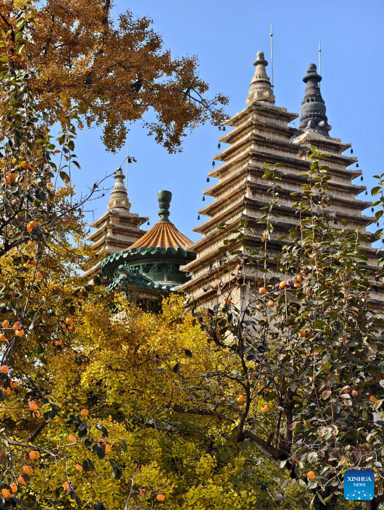 This photo taken by a mobile phone on Oct. 31, 2025 shows a view of Wuta (five-pagoda) Temple in Beijing, capital of China. (Xinhua/Xu Jinquan)