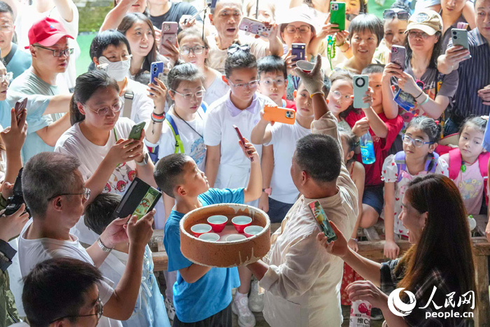 Tourists pose for a picture at the re-ignition ceremony for an ancient kiln in Jingdezhen, east China's Jiangxi Province. (People's Daily Online/Kong Wenjin)