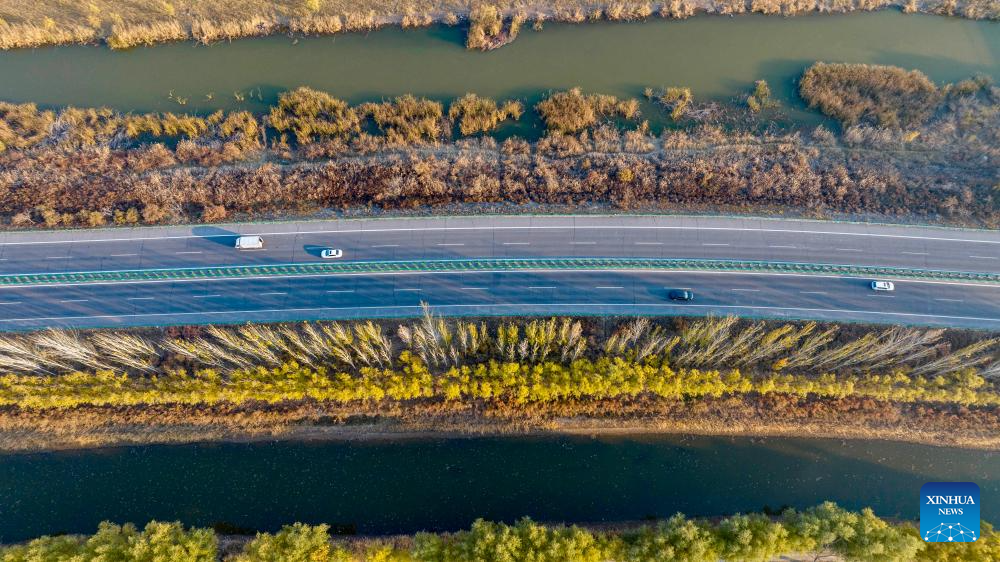 A drone photo taken on Nov. 4, 2025 shows a view of the Yellow River in Qingtongxia City, northwest China's Ningxia Hui Autonomous Region.