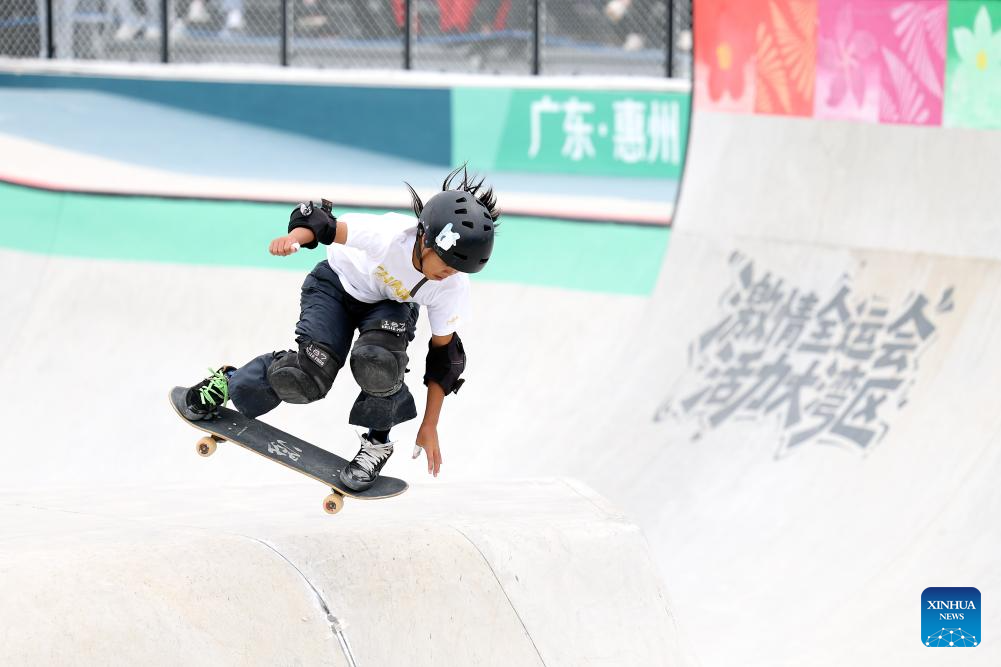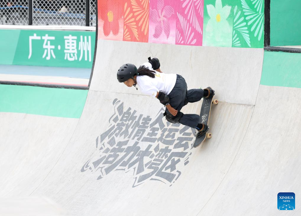 Zou Mingke of Guangdong competes during the women's park final of skateboarding at China's 15th National Games in Huizhou, south China's Guangdong Province, Nov. 11, 2025. (Xinhua/Lu Hanxin)