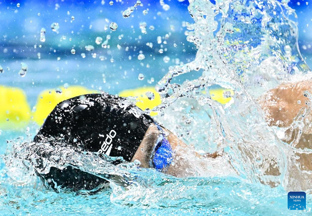 Li Bingjie of Hebei competes during the women's 1500m freestyle final of swimming at China's 15th National Games in Shenzhen, south China's Guangdong Province, Nov. 12, 2025. (Xinhua/Xue Yuge)