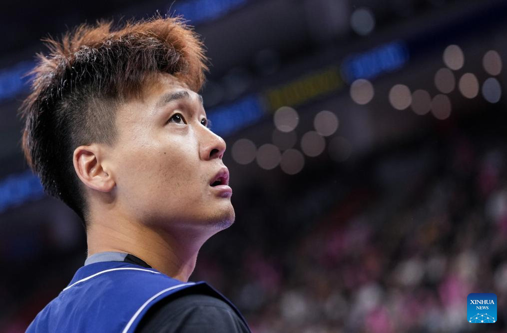 Zhao Rui of Guangdong looks on during the men's basketball final between Guangdong and Zhejiang at China's 15th National Games in Qingyuan, south China's Guangdong Province, Nov. 12, 2025. (Xinhua/Li Bo)