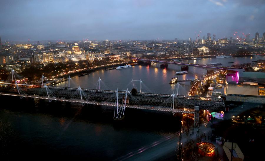 This photo taken on Feb. 8, 2024 shows a view of the River Thames during the twilight in London, Britain. (Xinhua/Li Ying)