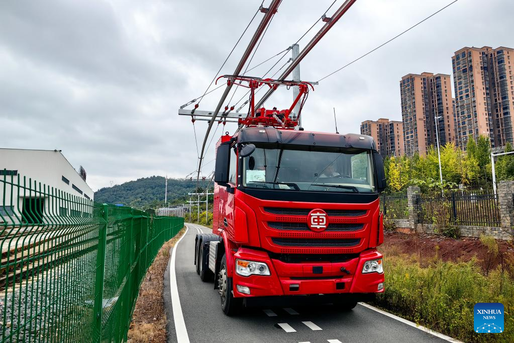 CHANGSHA, Nov. 17 (Xinhua) -- A new type of electrified smart "braided heavy truck" has been developed to support the green transformation of China's logistics industry, according to the Chinese manufacturer CRRC Zhuzhou Locomotive Co., Ltd.