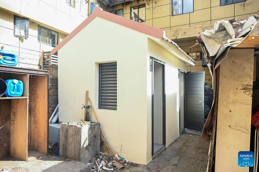 This file photo taken on May 19, 2023 shows a toilet shared by three households in an old neighborhood in east China's Shanghai. (Xinhua/Liu Ying)