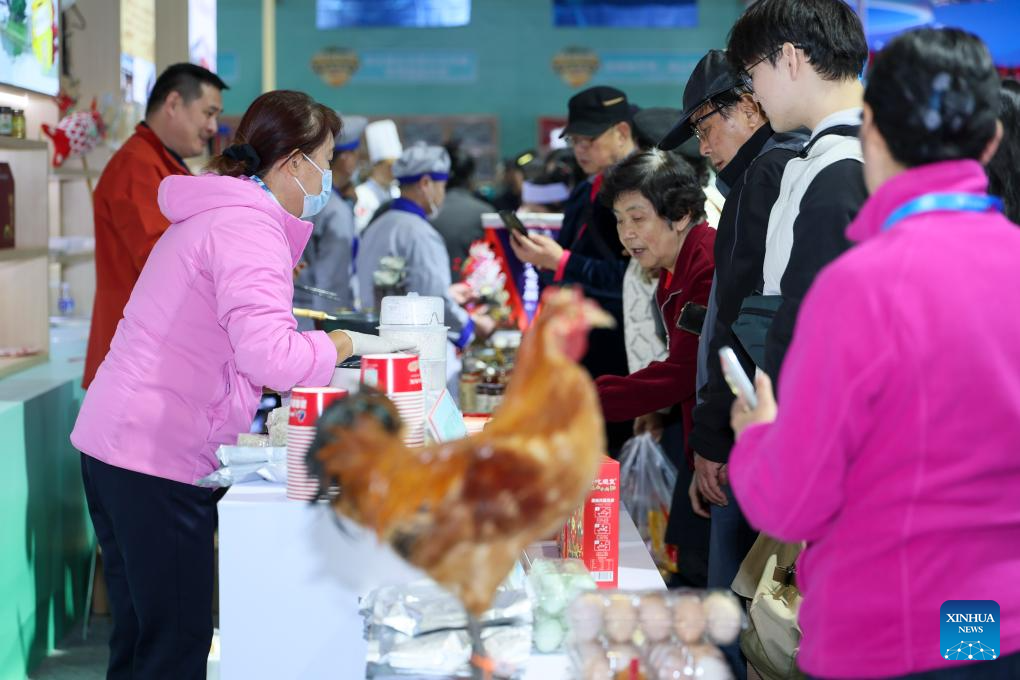 Visitors taste local food at an exhibition area of east China's Anhui Province during the 6th Yangtze River Delta International Cultural Industries Expo in east China's Shanghai, Nov. 20, 2025. Covering an area of 80,000 square meters, the expo kicked off in Shanghai on Thursday, with more than 1,500 exhibitors participating. (Xinhua/Wang Xiang)