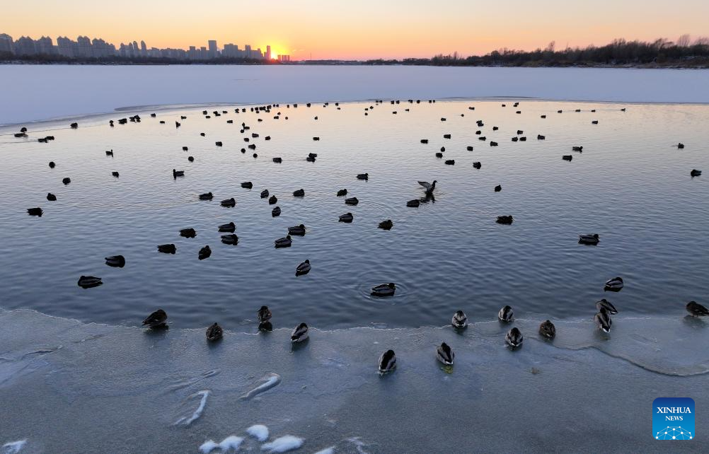 Mallards rest on Harbin section of Songhua River in Heilongjiang