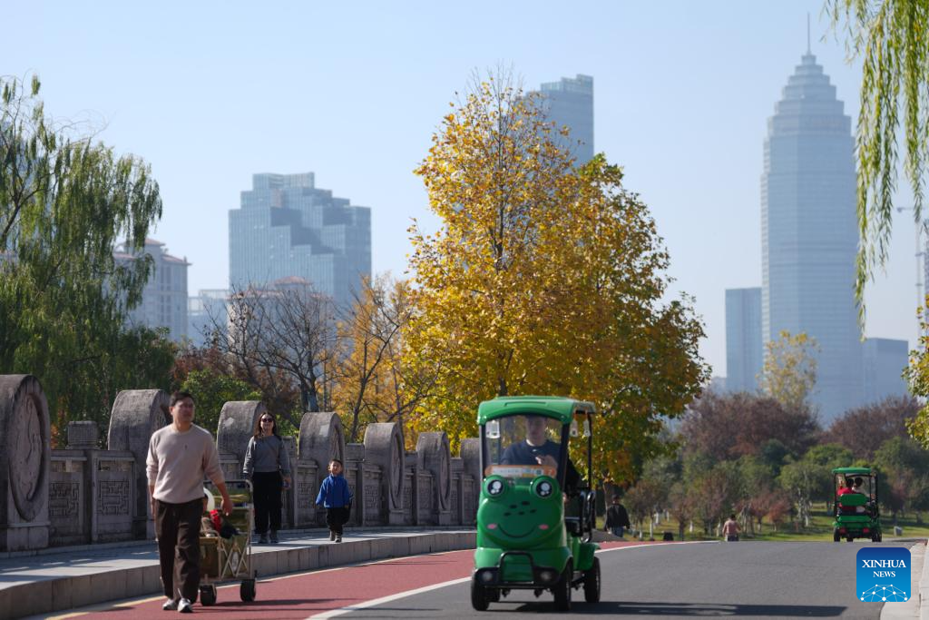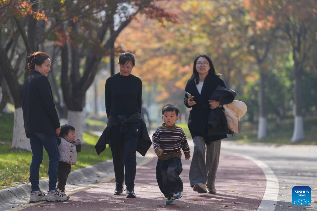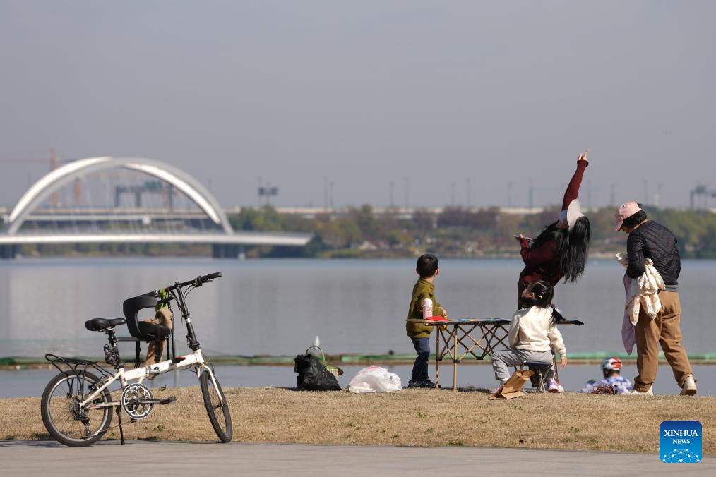 People enjoy themselves at Didang lake scenic area in Shaoxing, east China's Zhejiang Province, Nov. 30, 2025. (Xinhua/Huang Zongzhi)