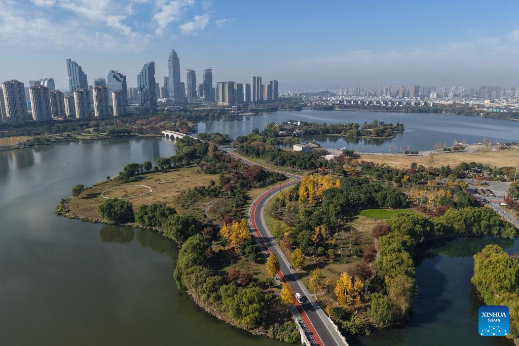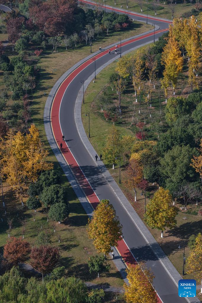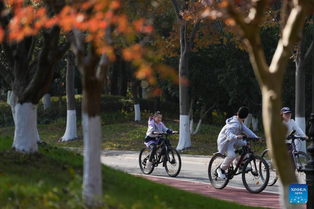 People ride bikes at Didang lake scenic area in Shaoxing, east China's Zhejiang Province, Nov. 30, 2025. (Xinhua/Huang Zongzhi)