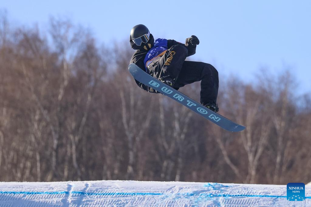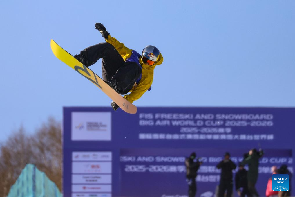 Su Yiming of China competes during the men's final of the FIS Snowboard Big Air World Cup 2026 at Secret Garden in Zhangjiakou, north China's Hebei Province, Nov. 29, 2025. (Xinhua/Lu Xingji)