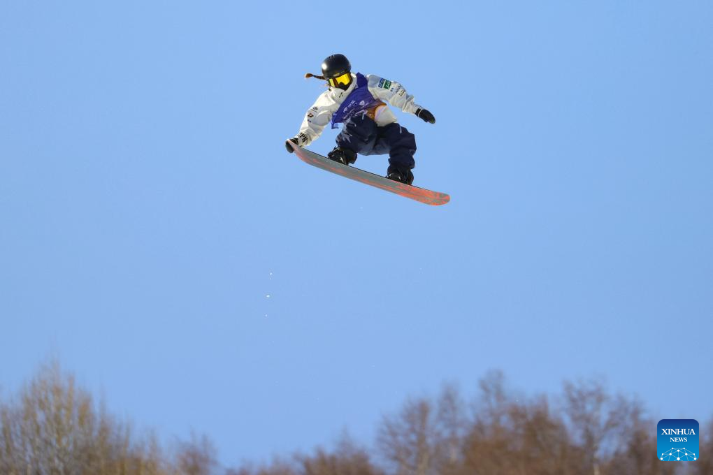 Fukuda Mari of Japan competes during the women's final of the FIS Snowboard Big Air World Cup 2026 at Secret Garden in Zhangjiakou, north China's Hebei Province, Nov. 29, 2025. (Photo by Wu Diansen/Xinhua)