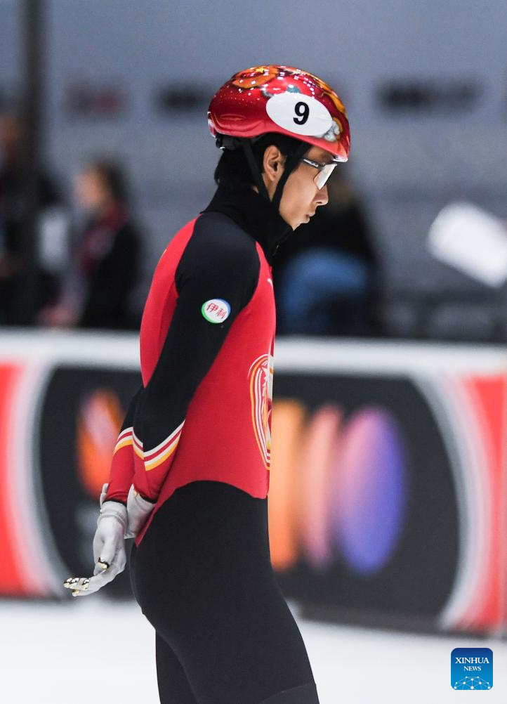 Sun Long of China reacts before the men's 1500m final at the ISU Short Track World Tour #4 speed skating event in Dordrecht, the Netherlands, Nov. 29, 2025. (Xinhua/Peng Ziyang)