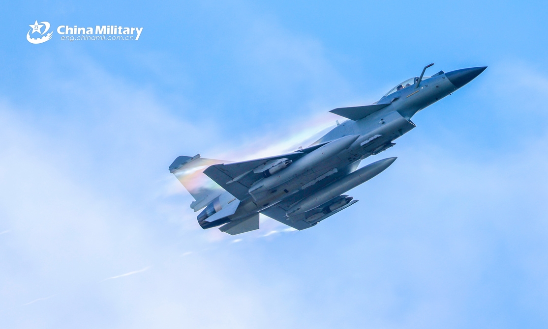A J-10C fighter jet attached to an aviation unit with the air force under Chinese PLA Southern Theater Command soars up into sky during a live-fire training exercise on November 12, 2025. (eng.chinamil.com.cn/Photo by Li Zishao)