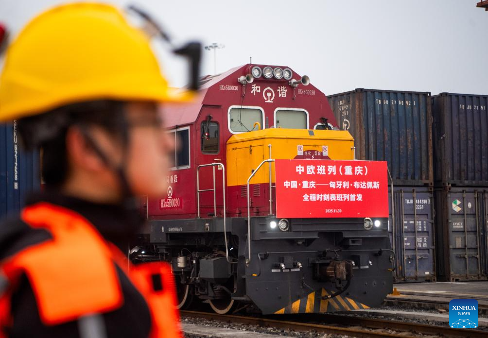 CHONGQING, Nov. 30 (Xinhua) -- A freight train bound for Budapest, Hungary, departed from southwest China's Chongqing Municipality on Sunday, marking the launch of a new fixed-schedule China-Europe freight train service, also known as China Railway Express.