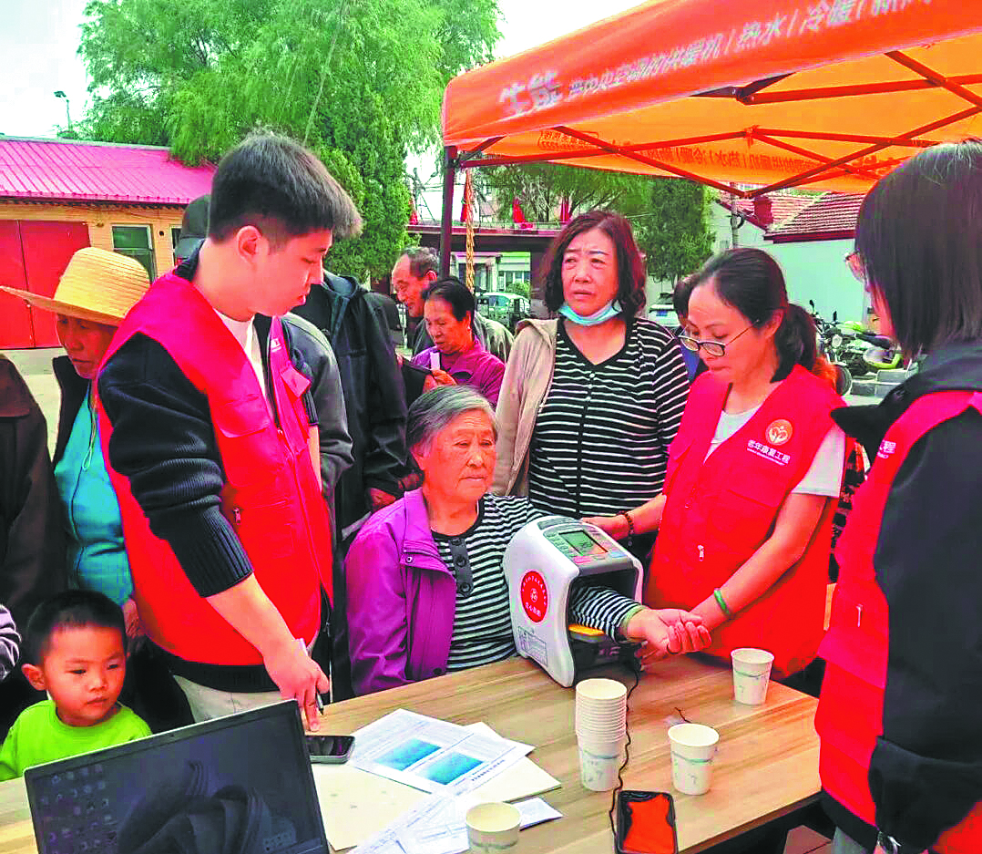 Chen (second from right) and her colleagues provide free health checks to seniors at a village in Hebei province. CHINA DAILY