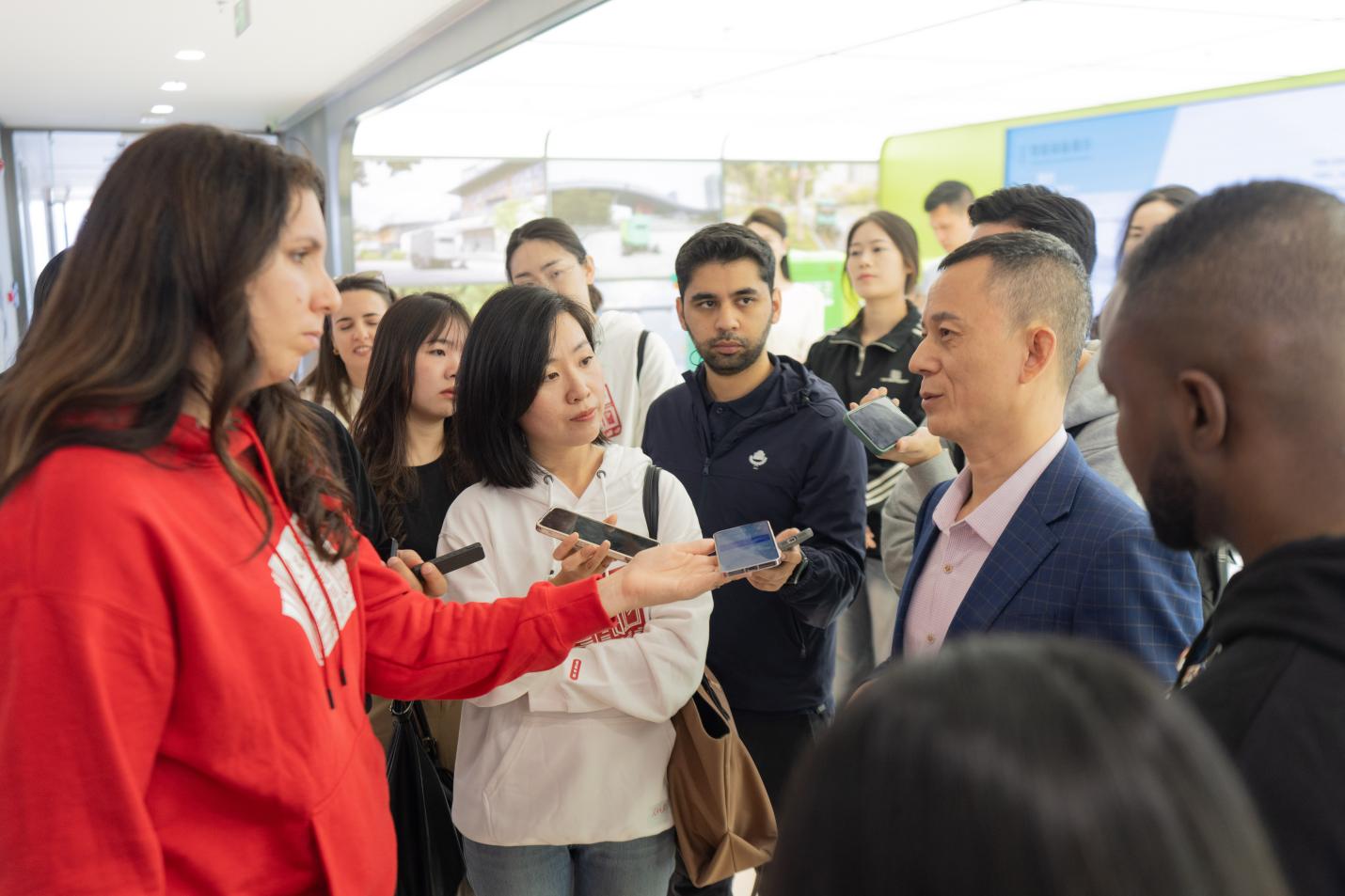 Upon arriving at the center, the media team was introduced to a multifunctional sweeper equipped with a powerful cleaning system and advanced autonomous driving technology. The sweeper delivers high-precision automated cleaning across diverse urban road environments. Journalists were impressed by the technology and eagerly captured footage as the sweeper demonstrated its ability to classify waste materials into different bins.