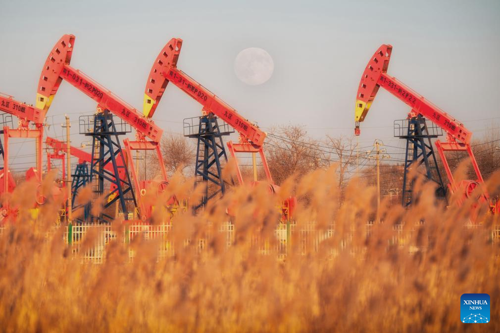 A full moon is pictured at Zhalong National Nature Reserve in Qiqihar, northeast China's Heilongjiang Province, Dec. 4, 2025. This year's second-largest full moon to the eyes of lunar observers will appear on Friday morning, but the best viewing time falls on Thursday evening. (Photo by Wang Yonggang/Xinhua)