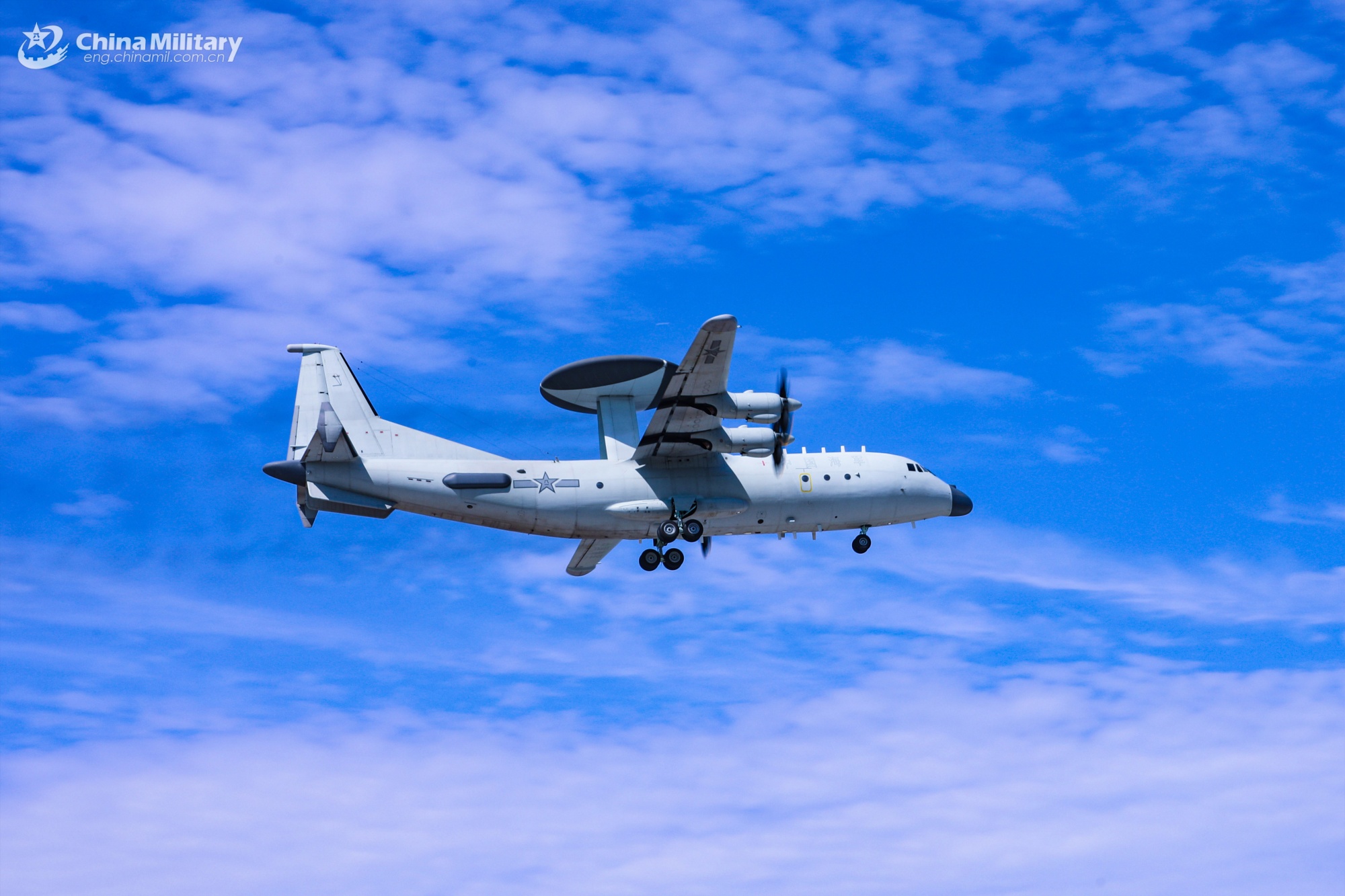 A KJ-500 airborne early warning (AEW) aircraft attached to an aviation unit under the Chinese PLA Navy soars into the sky during a flight training exercise on November 10, 2025. (eng.chinamil.com.cn/Photo by Xing Yun)
