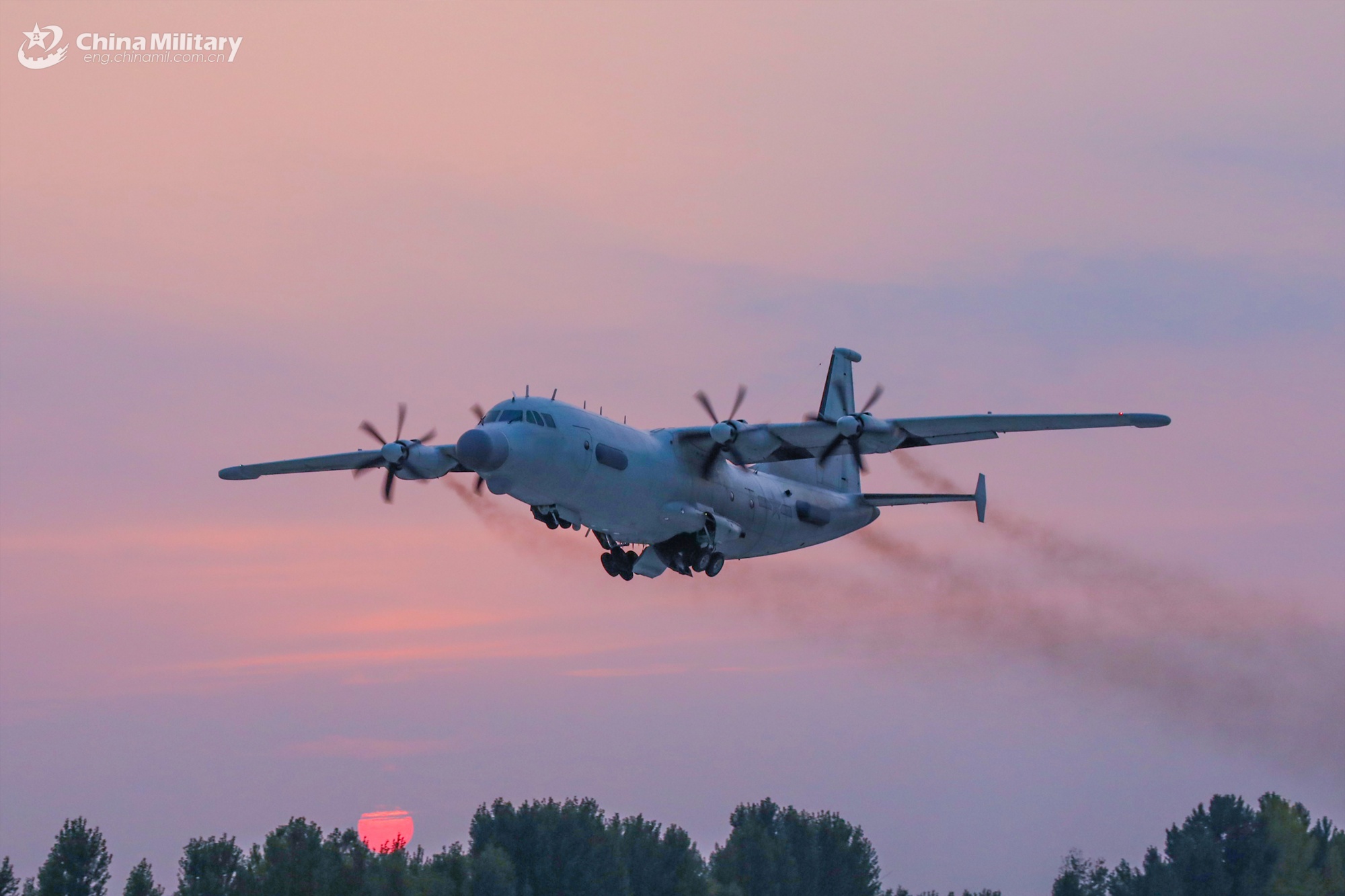 A Y-8 reconnaissance aircraft attached to an aviation unit under the Chinese PLA Navy soars into the sky during a flight training exercise on November 10, 2025. (eng.chinamil.com.cn/Photo by Xing Yun)