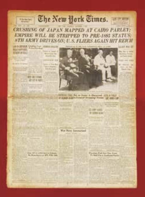 The Museum of the War of Chinese People's Resistance Against Japanese Aggression in Beijing houses a valuable newspaper: an original copy of the Dec. 2, 1943, edition of The New York Times, which includes the Cairo Declaration released jointly by China, Britain and the United States.