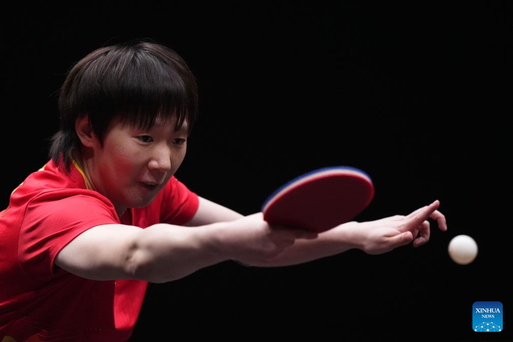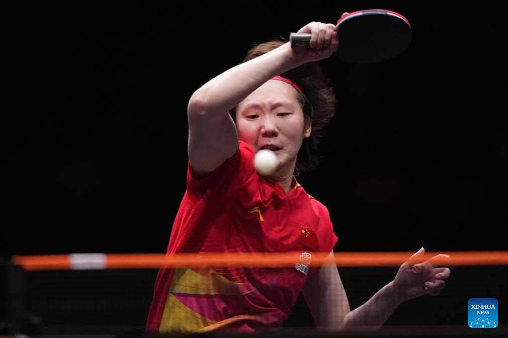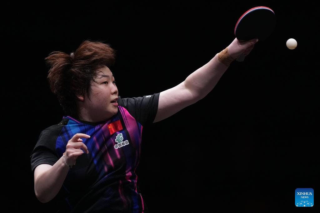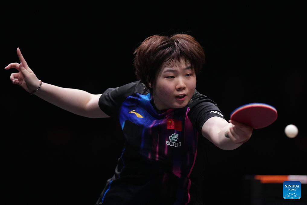 Kuai Man competes during the women's singles final between Wang Manyu of China and Kuai Man of China at the WTT Finals Hong Kong 2025 in Hong Kong, south China, Dec. 14, 2025. (Xinhua/Lui Siu Wai)