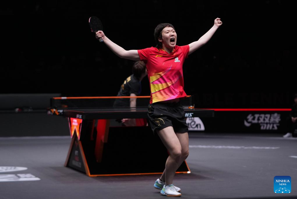 HONG KONG, Dec. 14 (Xinhua) -- China's Wang Manyu beat compatriot Kuai Man 4-2 to retain her women's singles title at the World Table Tennis Finals on Sunday.