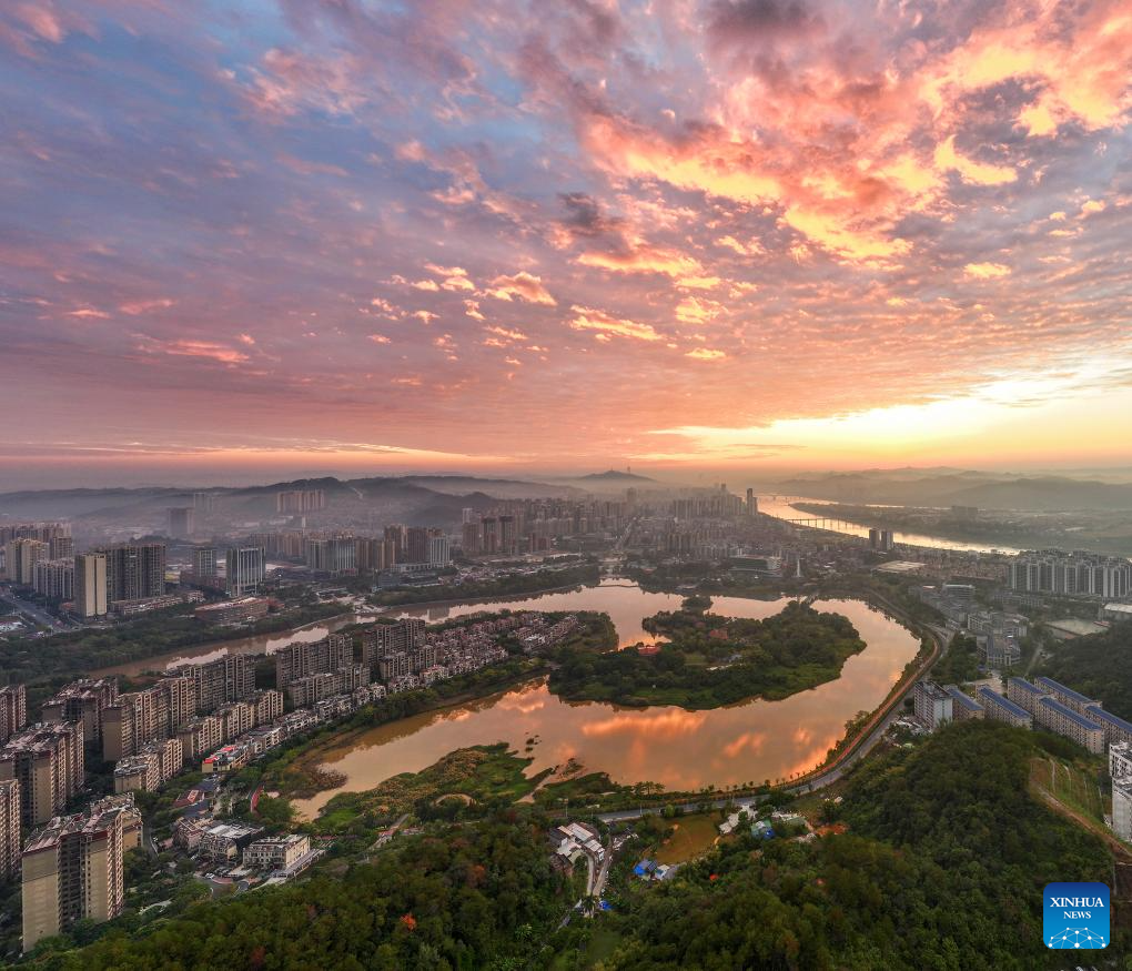 An aerial drone photo taken on Dec. 17, 2025 shows the winter scenery in Wuzhou City, south China's Guangxi Zhuang Autonomous Region. (Photo by He Huawen/Xinhua)