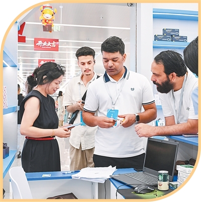 Foreign buyers discuss and finalize orders with local merchants at the Global Digital Trade Center in Yiwu, east China's Zhejiang Province. (Photo/Wang Yijie)