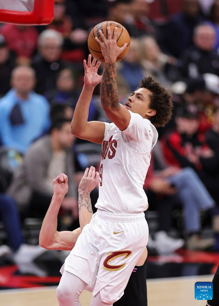 Cleveland Cavaliers' Craig Porter Jr. drives to the basket during the 2025-2026 NBA regular season match between Chicago Bulls and Cleveland Cavaliers in Chicago, the United States, on Dec. 17, 2025. (Photo by Joel Lerner/Xinhua)