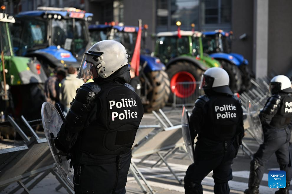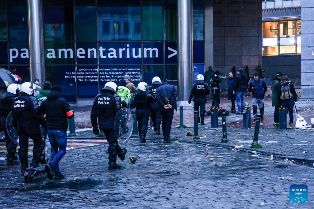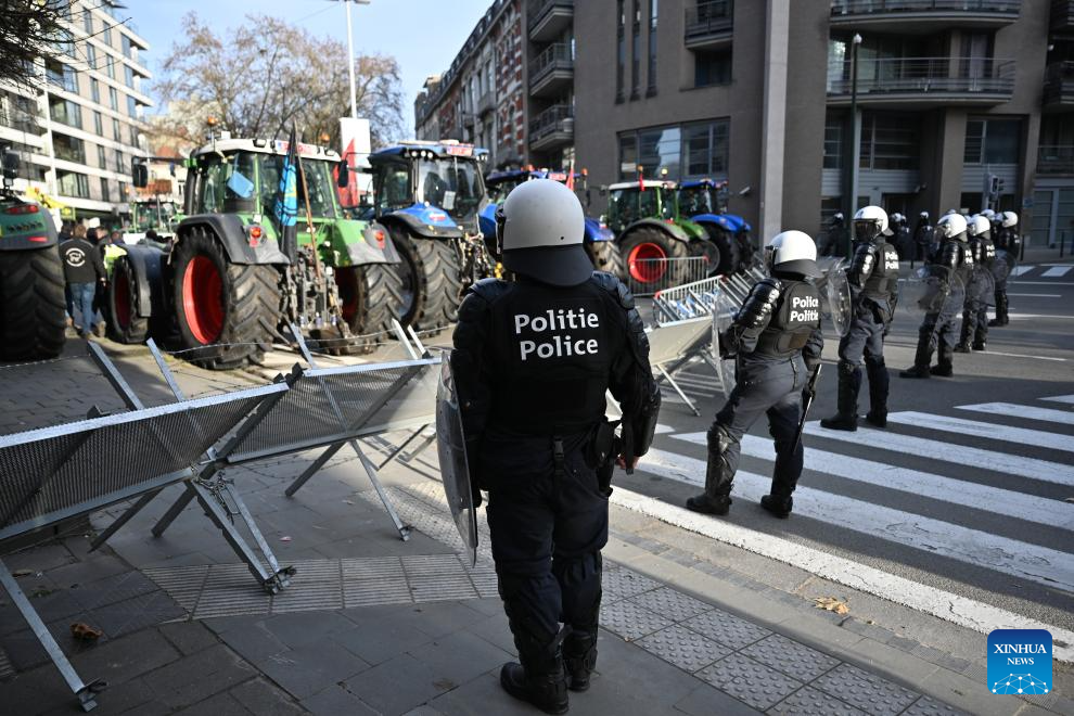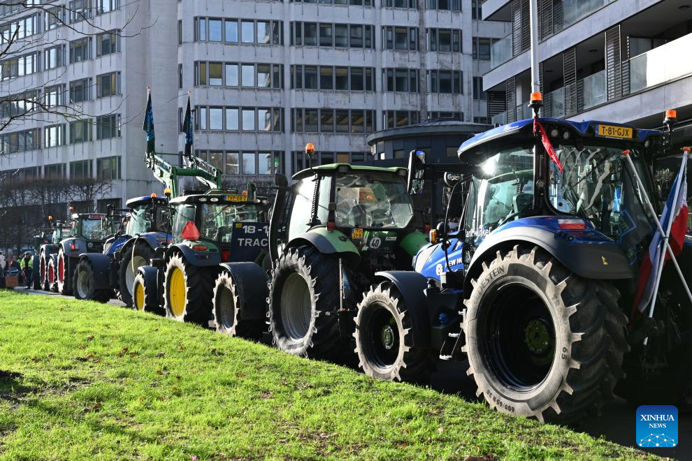 BRUSSELS, Dec. 18 (Xinhua) -- Thousands of farmers from across Europe rallied near the European Parliament and the Europa Building in Brussels on Thursday as European Union (EU) leaders convened for a summit, with a long-negotiated trade deal with the South American bloc Mercosur on the agenda.