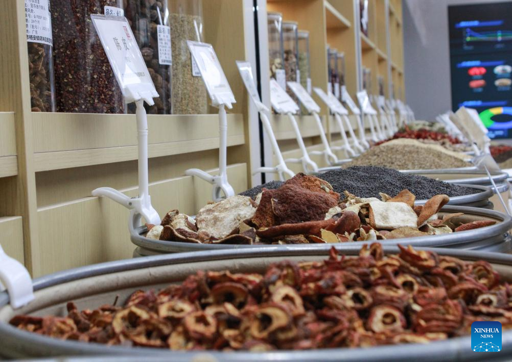 Physical samples are pictured at a digital trading platform for spices in Yang'an County of Laoling City, east China's Shandong Province, Dec. 18, 2025. The tiny town of Yang'an in Laoling, a county-level city, has built a seasoning empire that reaches over 70 countries and regions, and has captured 40 percent of China's composite spice market.
