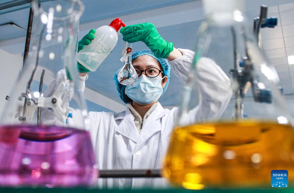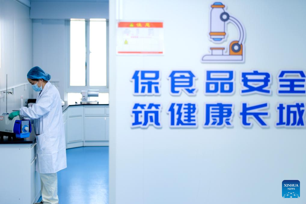 A staff member conducts tests on condiment samples at a shared laboratory for condiment producers in Yang'an County of Laoling City, east China's Shandong Province, Dec. 18, 2025. The tiny town of Yang'an in Laoling, a county-level city, has built a seasoning empire that reaches over 70 countries and regions, and has captured 40 percent of China's composite spice market.
