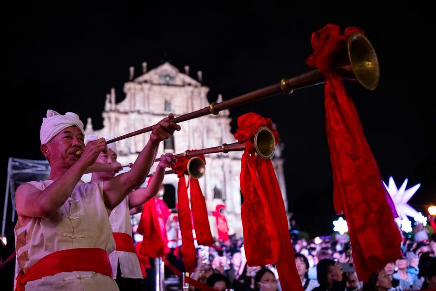 MACAO, Dec. 21 (Xinhua) -- The Macao Special Administrative Region (SAR) government held a flag-raising ceremony and a reception on Saturday to celebrate the 26th anniversary of its return to the motherland.