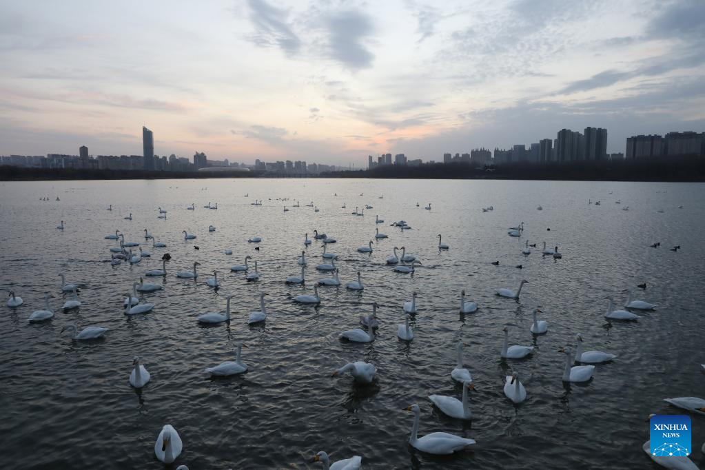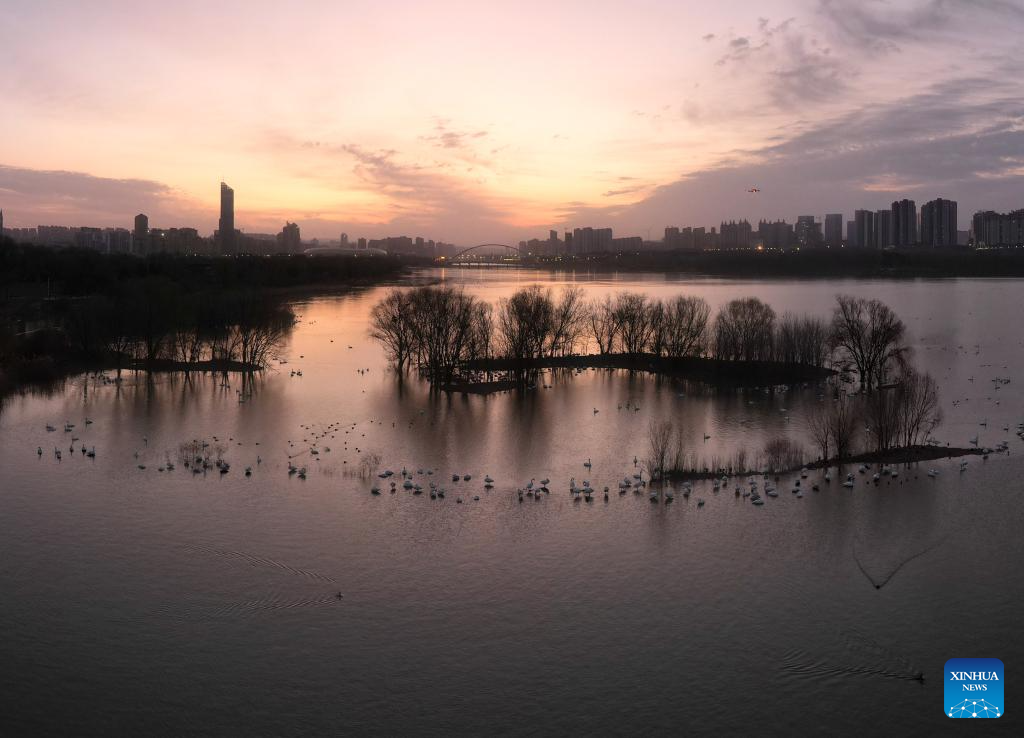 Migratory swans flock to Yellow River wetland in Sanmenxia to spend winter