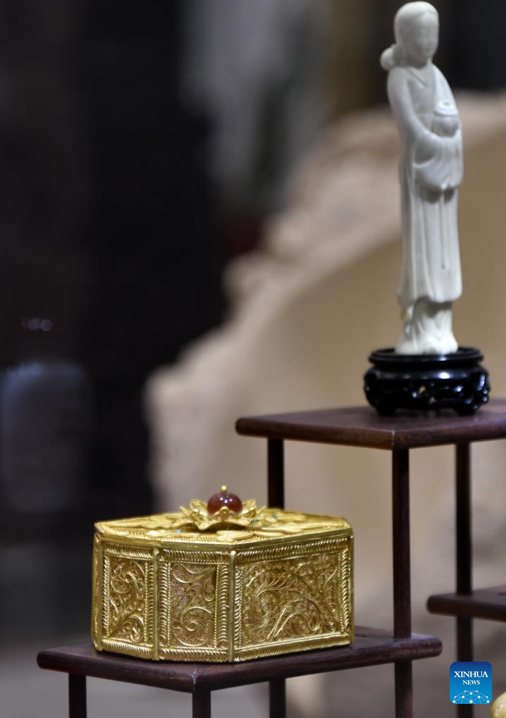 This photo shows a piece of filigree inlay work at an exhibition of intangible cultural heritages in Beijing, capital of China, Dec. 19, 2025. The exhibition showcases more than 500 pieces of artworks by inheritors of intangible cultural heritages nationwide. (Xinhua/Li Xin)