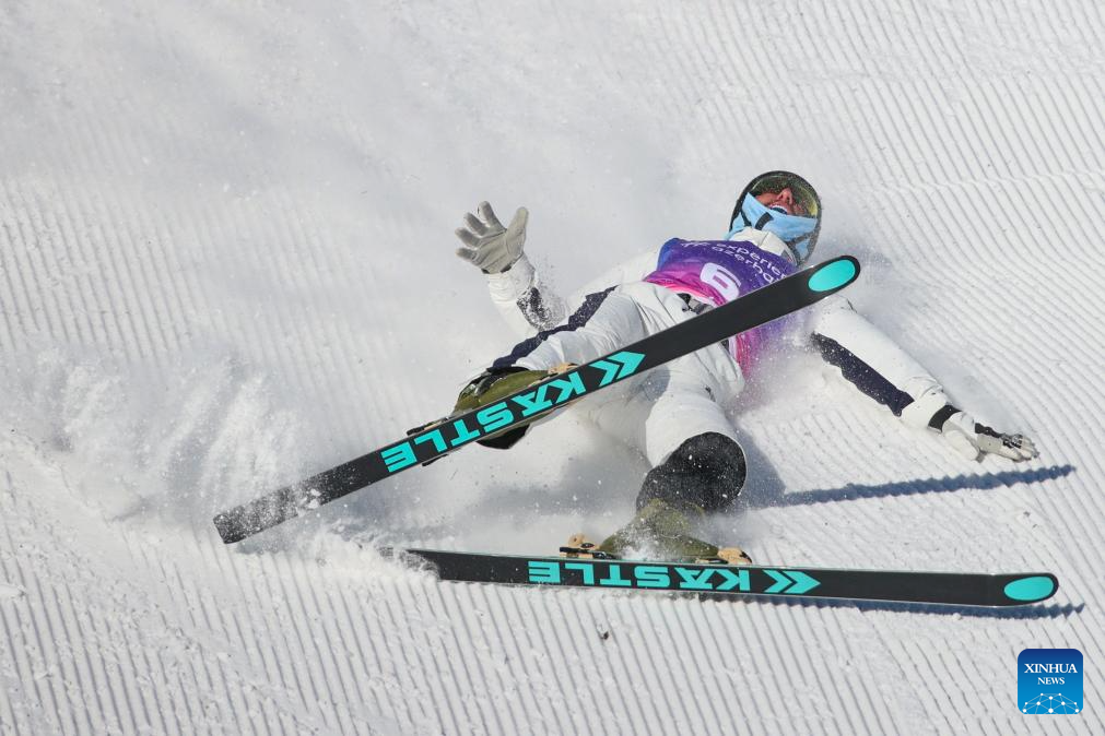 Ashton Salwan of team USA 2 falls down during the mixed team aerials final of FIS Freestyle Ski World Cup 2026 in Zhangjiakou, north China's Hebei Province, Dec. 21, 2025. (Photo by Wu Diansen/Xinhua)