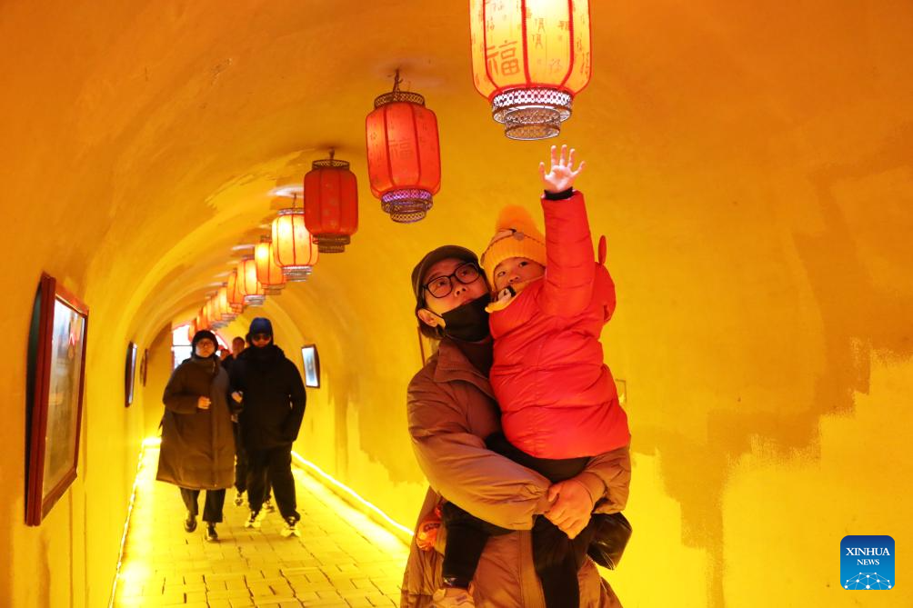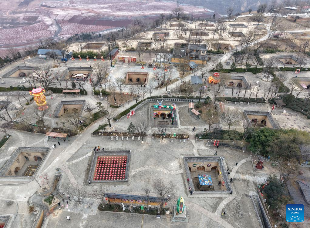 Tourists enjoy their time at a traditional Dikengyuan residence in Beiying Village, Zhangbian Township, Shanzhou District, Sanmenxia City of central China's Henan Province, Dec. 21, 2025.