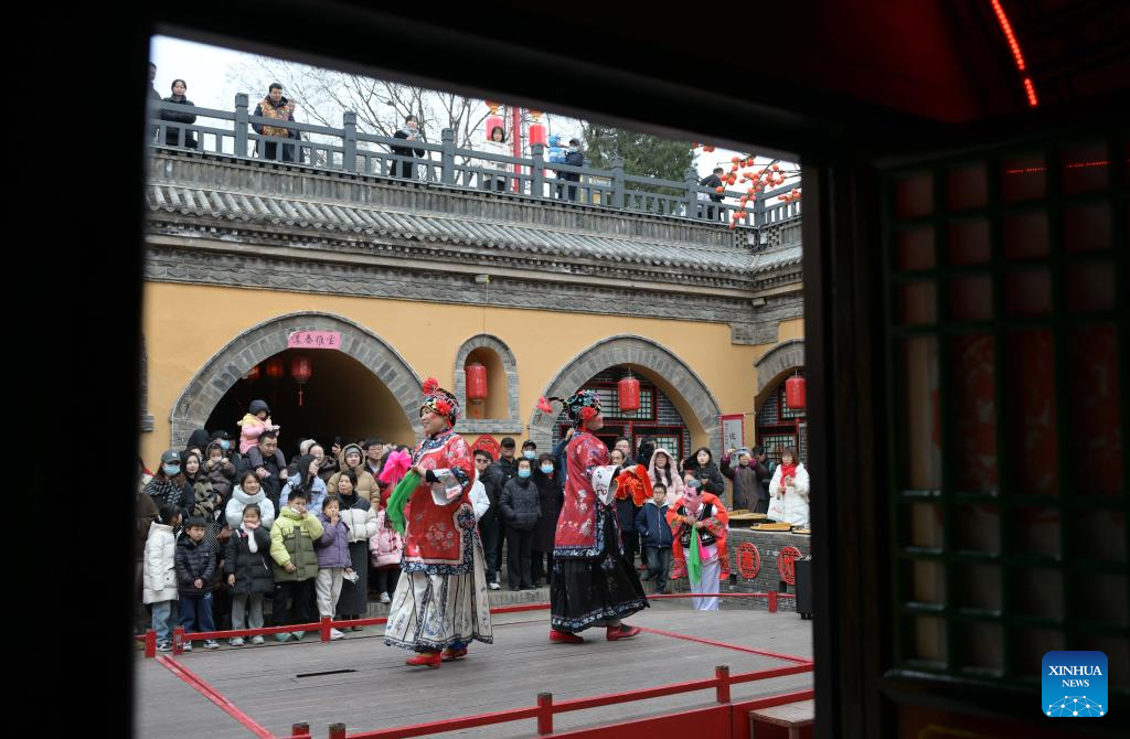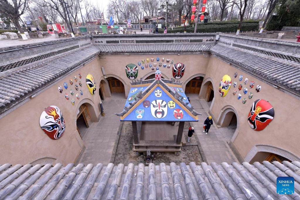 Tourists watch a local opera performance at a traditional Dikengyuan residence in Beiying Village, Zhangbian Township, Shanzhou District, Sanmenxia City of central China's Henan Province, Dec. 21, 2025.