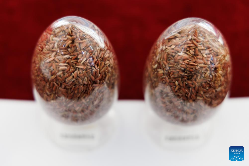 A rapidly domesticated wild rice species is pictured at a press conference of the Chinese Academy of Sciences (CAS) in Beijing, capital of China, Dec. 22, 2025. (Xinhua/Jin Liwang)
