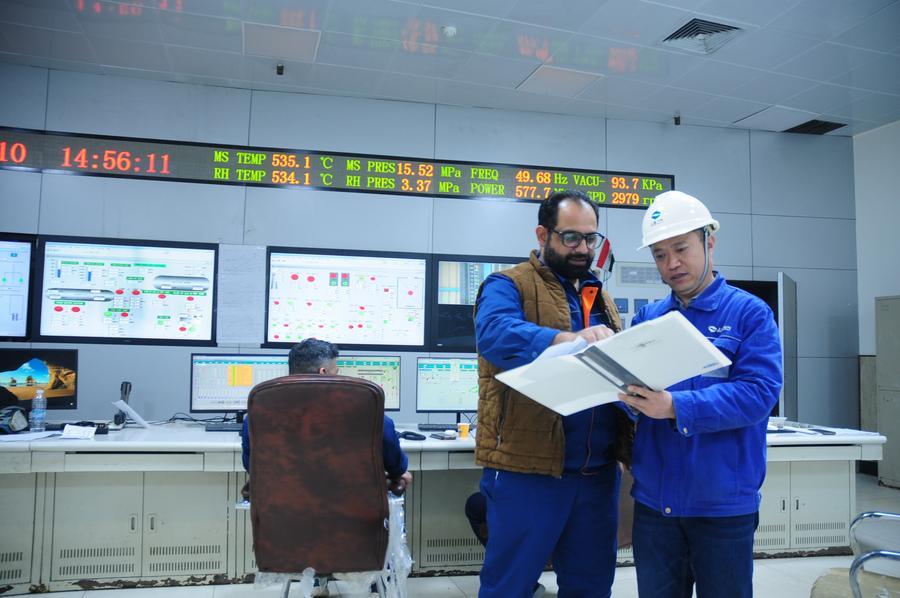 Staff members from China and Iraq check the operation of the generator units at the Wasit Power Plant, in Wasit Province, Iraq, Feb. 10, 2025. Constructed and maintained by Shanghai Electric Group, the Wasit Power Plant generates electricity for tens of thousands of families, bringing the light of hope to this war-torn country. (Xinhua/Duan Minfu)