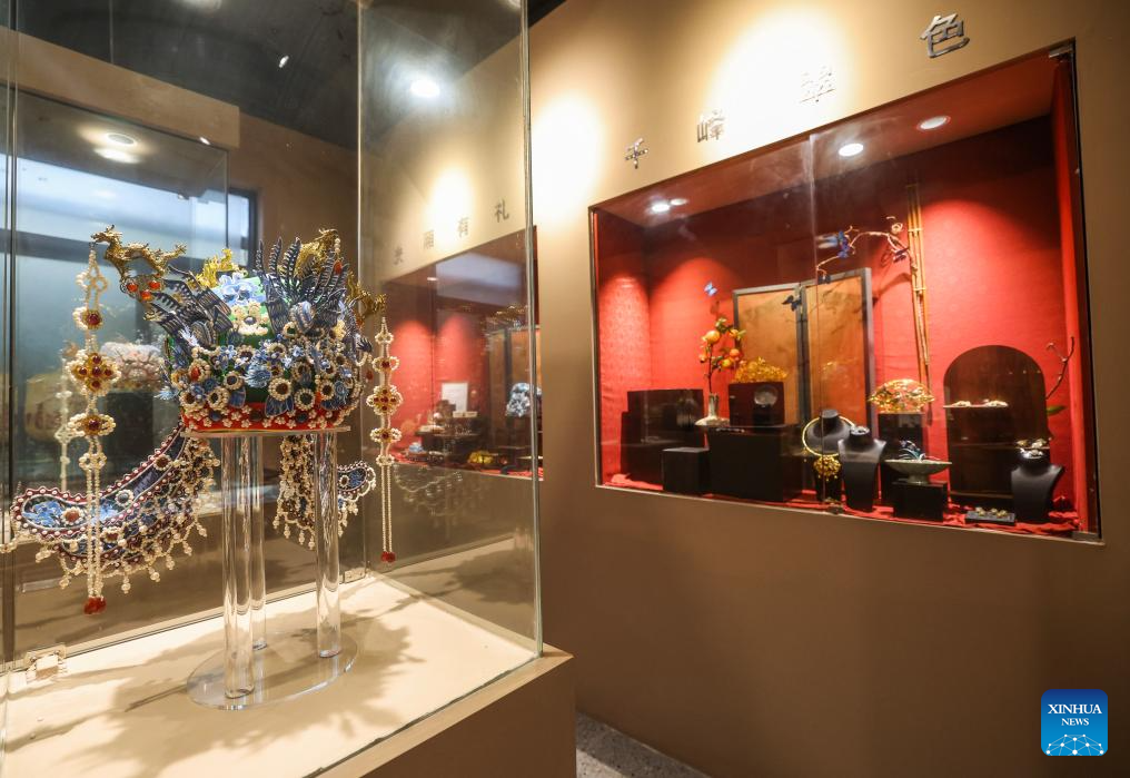 A coronet is pictured at an intangible cultural heritage workshop in an art village in Kuangyan Town, Cixi City, east China's Zhejiang Province, Dec. 24, 2025. In recent years, Kuangyan Town has built an art village integrated with cultural tourism to develop local rural industries and promote rural revitalization. (Xinhua/Xu Yu)