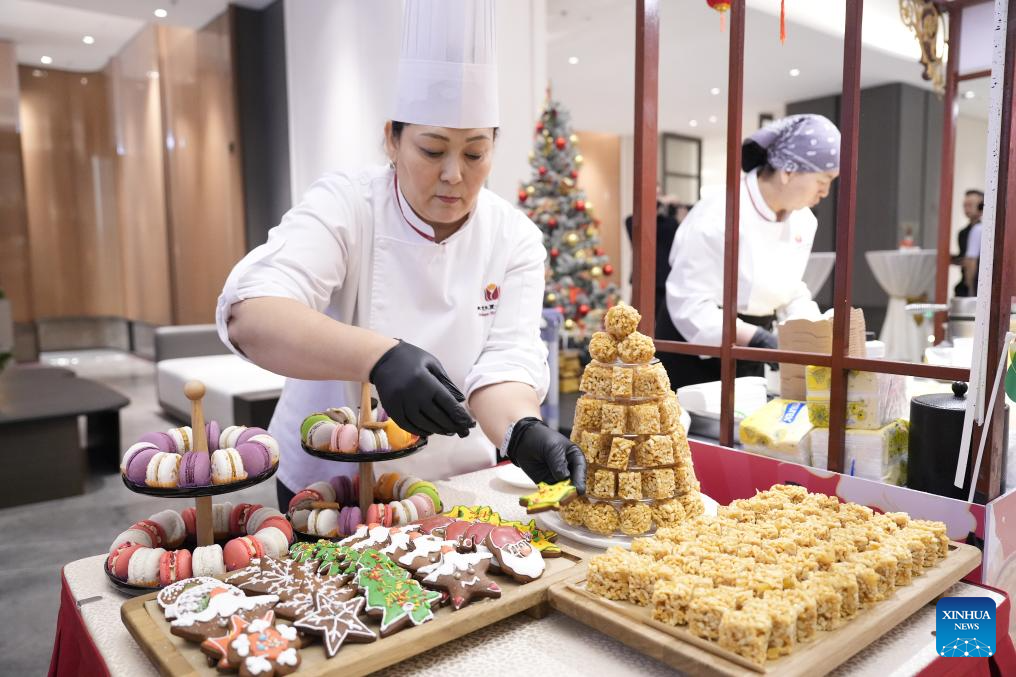 A chef prepares desserts during the Chinese Food Festival held in Astana, Kazakhstan, Dec. 24, 2025. The Chinese Food Festival was held on Wednesday in Astana, the capital of Kazakhstan. (Photo by Kalizhan Ospanov/Xinhua)