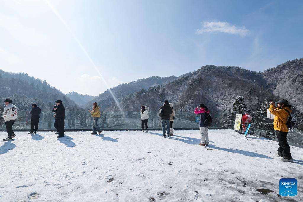 Tourists enjoy the scenery after snow in the Daming Mountain scenic area in Lin'an District of Hangzhou, east China's Zhejiang Province, on Dec. 25, 2025. Hangzhou's Daming Mountain scenic area saw snowfall under the influence of recent cold air. (Xinhua/Xu Yu)