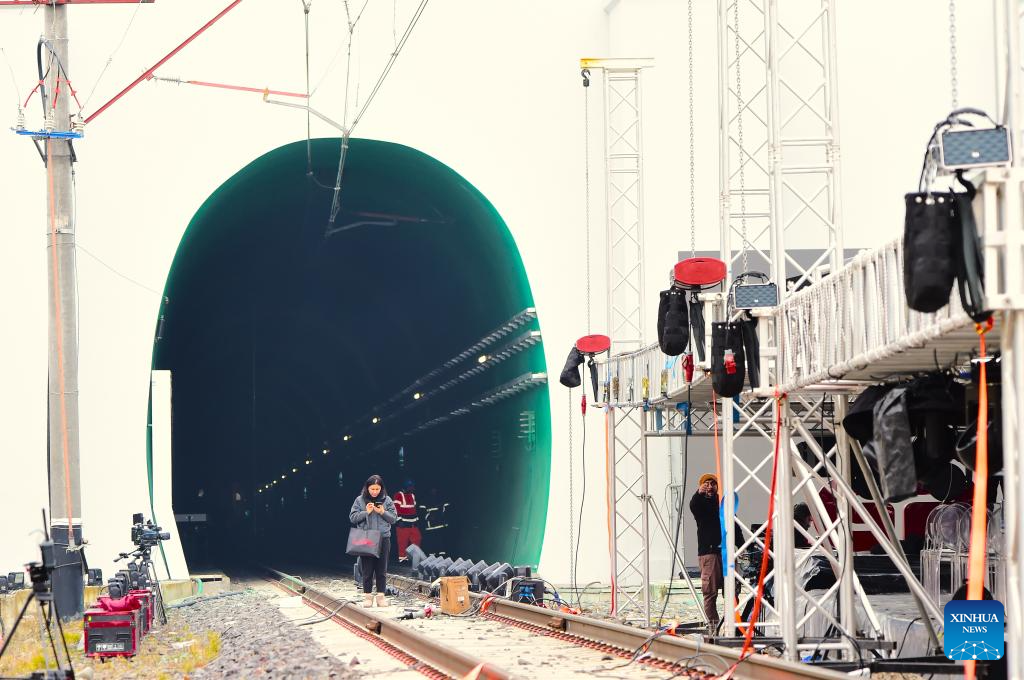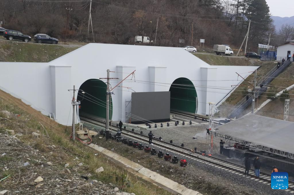 This photo taken on Dec. 24, 2025 shows an exterior view of Tunnel 9 along the Georgian Railway Modernization Project in Khashuri, Georgia. The China-built modern railway was put into operation on Wednesday in Georgia, a key transit country for cargo and passenger transport between Asia and Europe. (Xinhua/Chen Junfeng)
