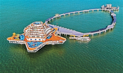 Off the coast of Laishan district in Yantai city, the "Genghai No. 1" marine ranch complex, invested in and constructed by Shandong Marine Group Ltd., integrates aquaculture and tourism facilities.
