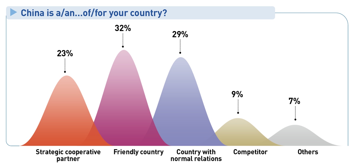 Over 80 percent of international respondents believe that their country has a normal, friendly, or strategic cooperative relationship with China. This perception is highly correlated with the reality that China has become the main trading partner of more than 150 countries and regions. Economic ties, as an important foundational factor in interstate relations, to some extent, reflect the actual warmth and stability of bilateral relations between China and relevant countries. China's neighborhood diplomacy concepts, such as "amity, sincerity, mutual benefit and inclusiveness," are deeply welcomed by regional countries. The demeanor exhibited in China's diplomacy brings harmony, tranquility, and development to neighboring countries.